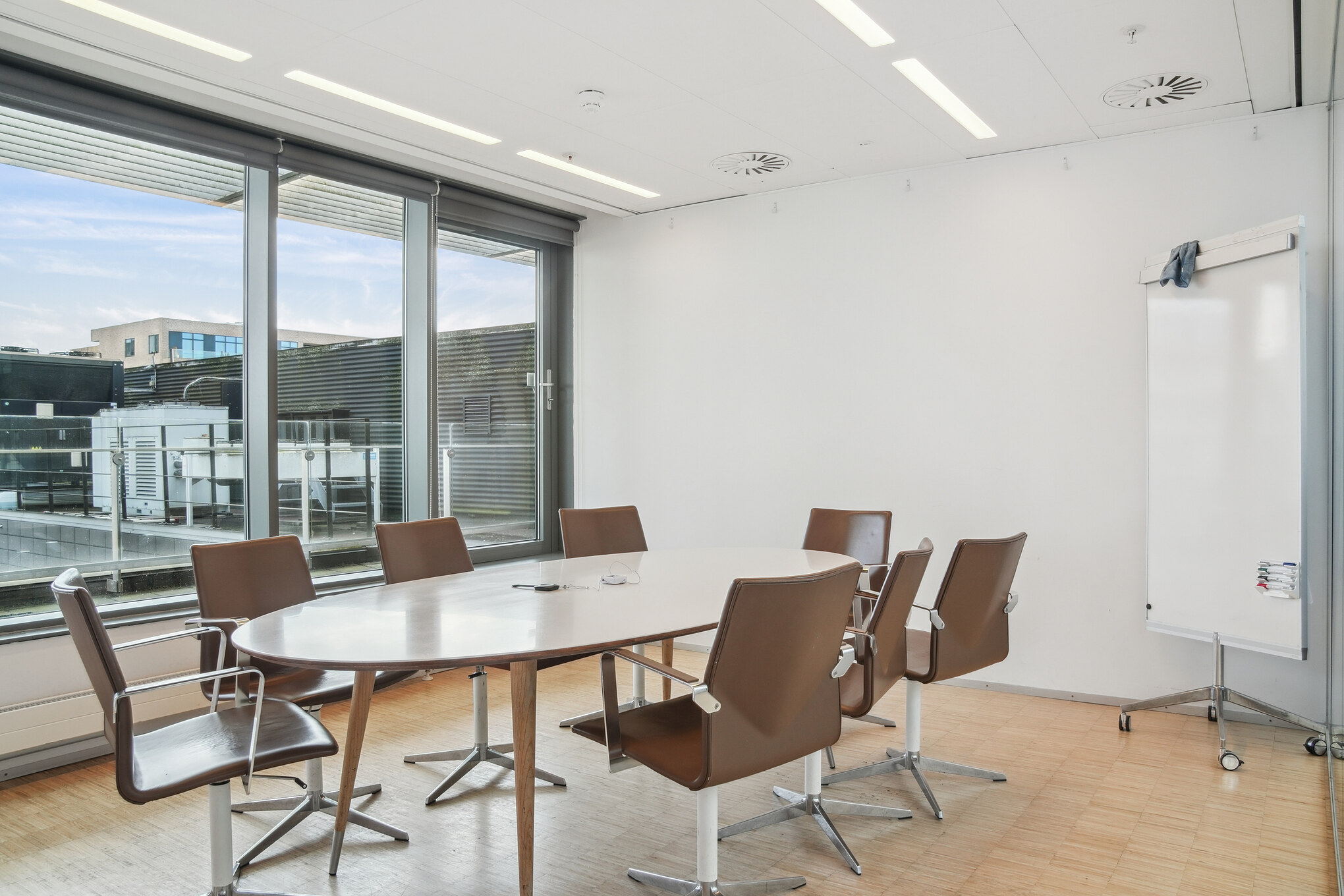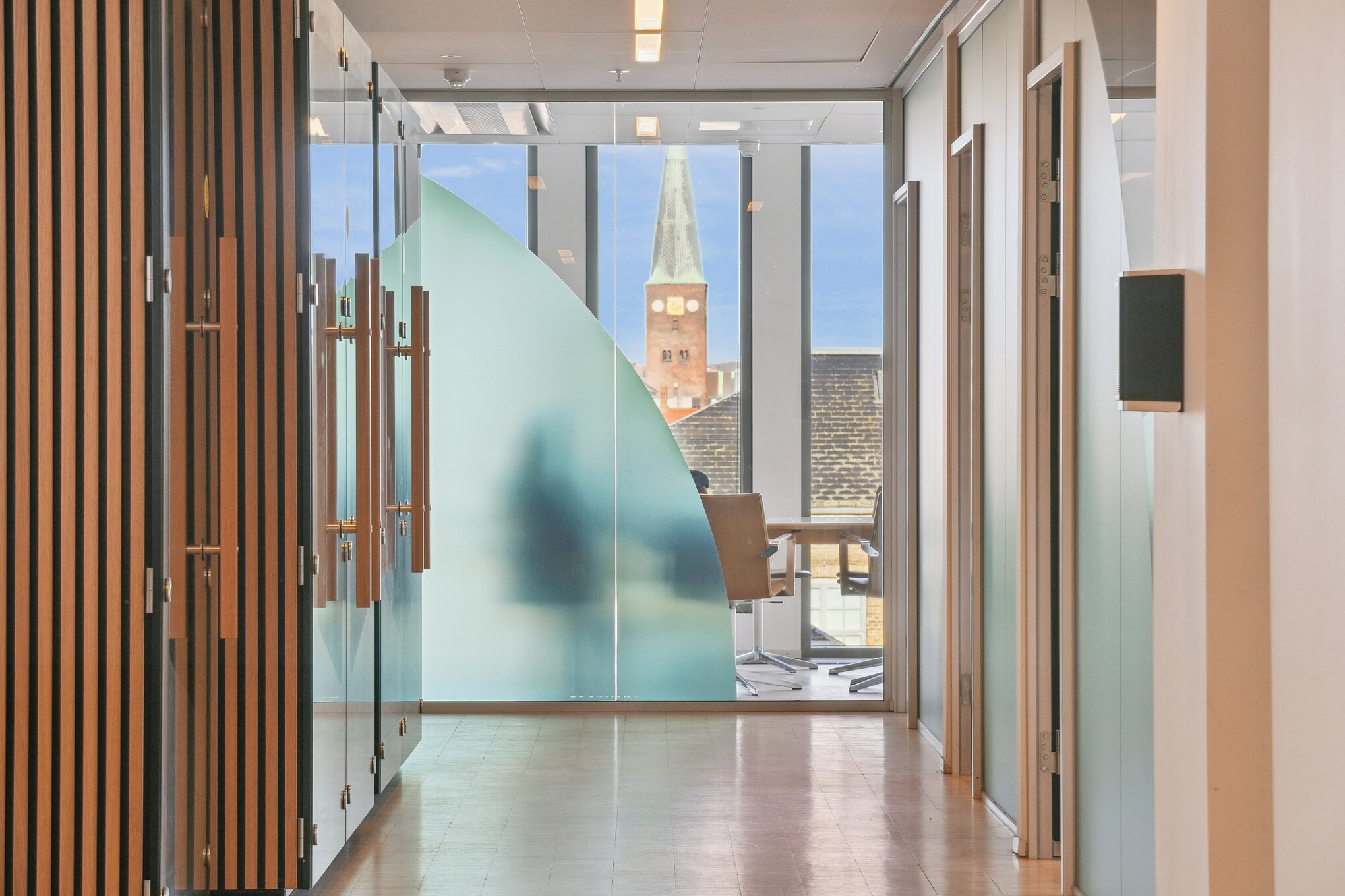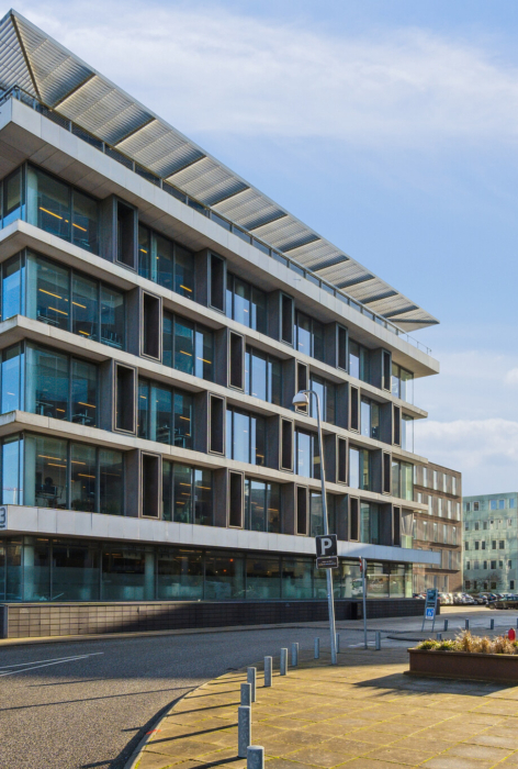 På taget er der terrasse med panoramaudsigt over hele byen, som kan benyttes til både arbejde og pauser. Og i ejendommens kælder er der mulighed for at leje op til 35 parkeringspladser.