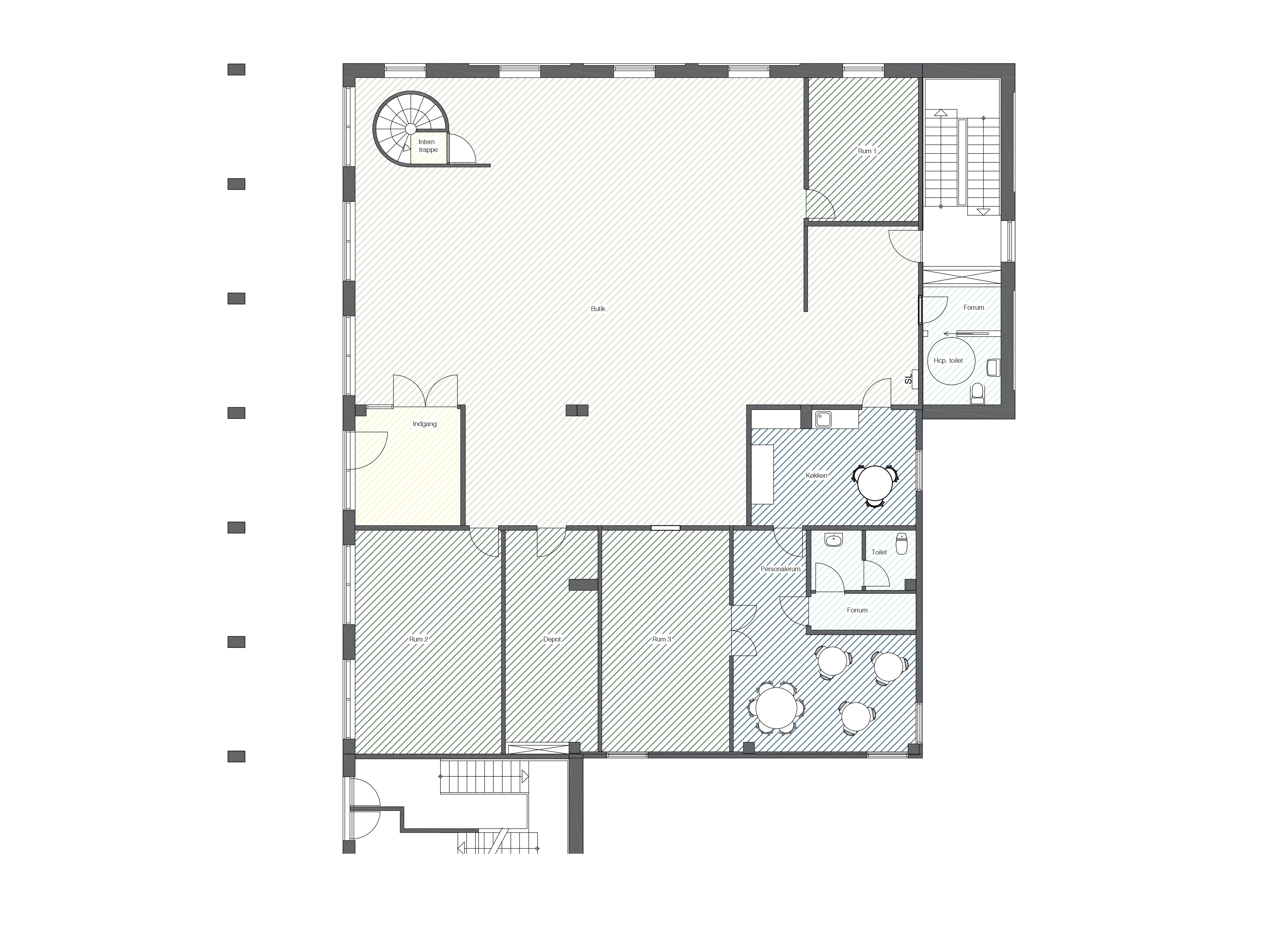 Det ledige lejemål er velegnet til butik og andre kundeorienterede erhverv, men mulighederne for indretning og anvendelse er mange. Lejemålet er indrettet med et stort butiksområde og mindre lokaler, der blandt andet egner sig til personalerum eller eksterne mødelokaler. Desuden er der tekøkken og et rummeligt depot i underetagen med direkte trappe fra stueetagen.
