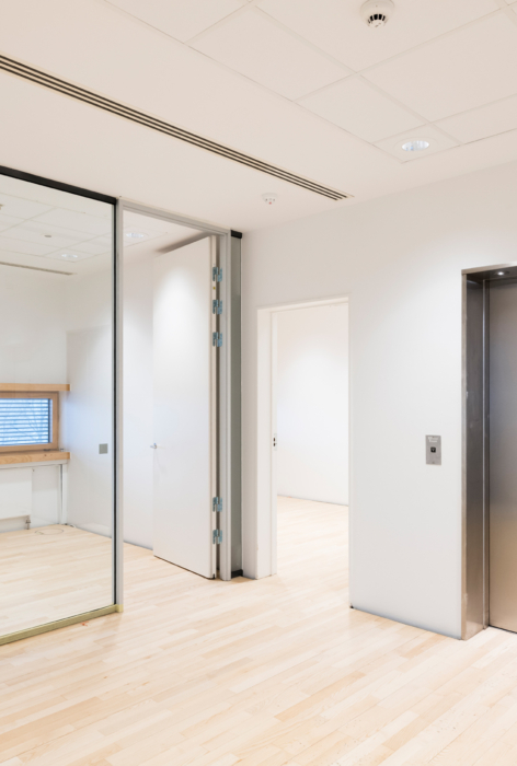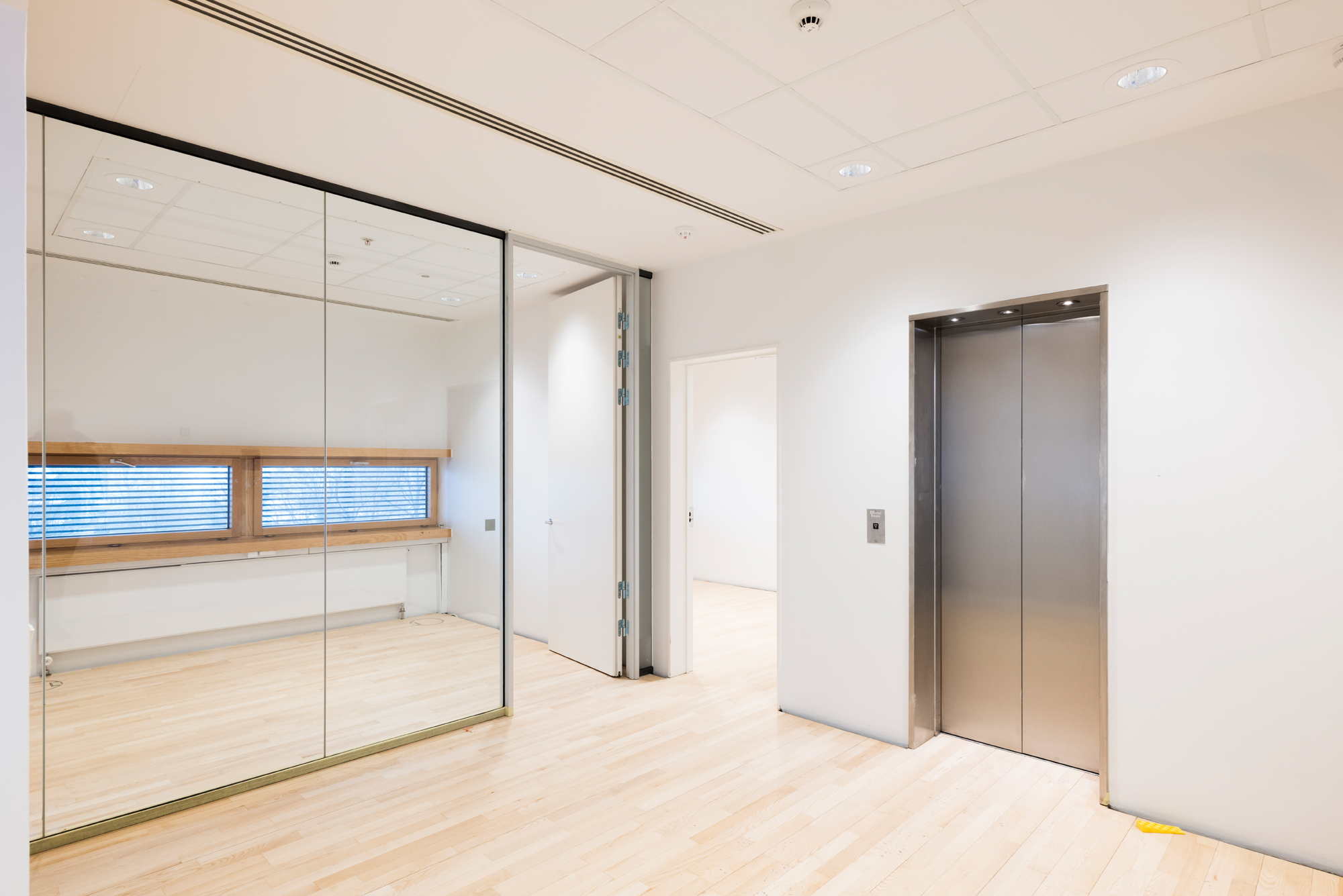 Via elevator fra ejendommens indgangsparti kommer du direkte ind i lejemålets ankomstområde. Her finder du to mødelokaler