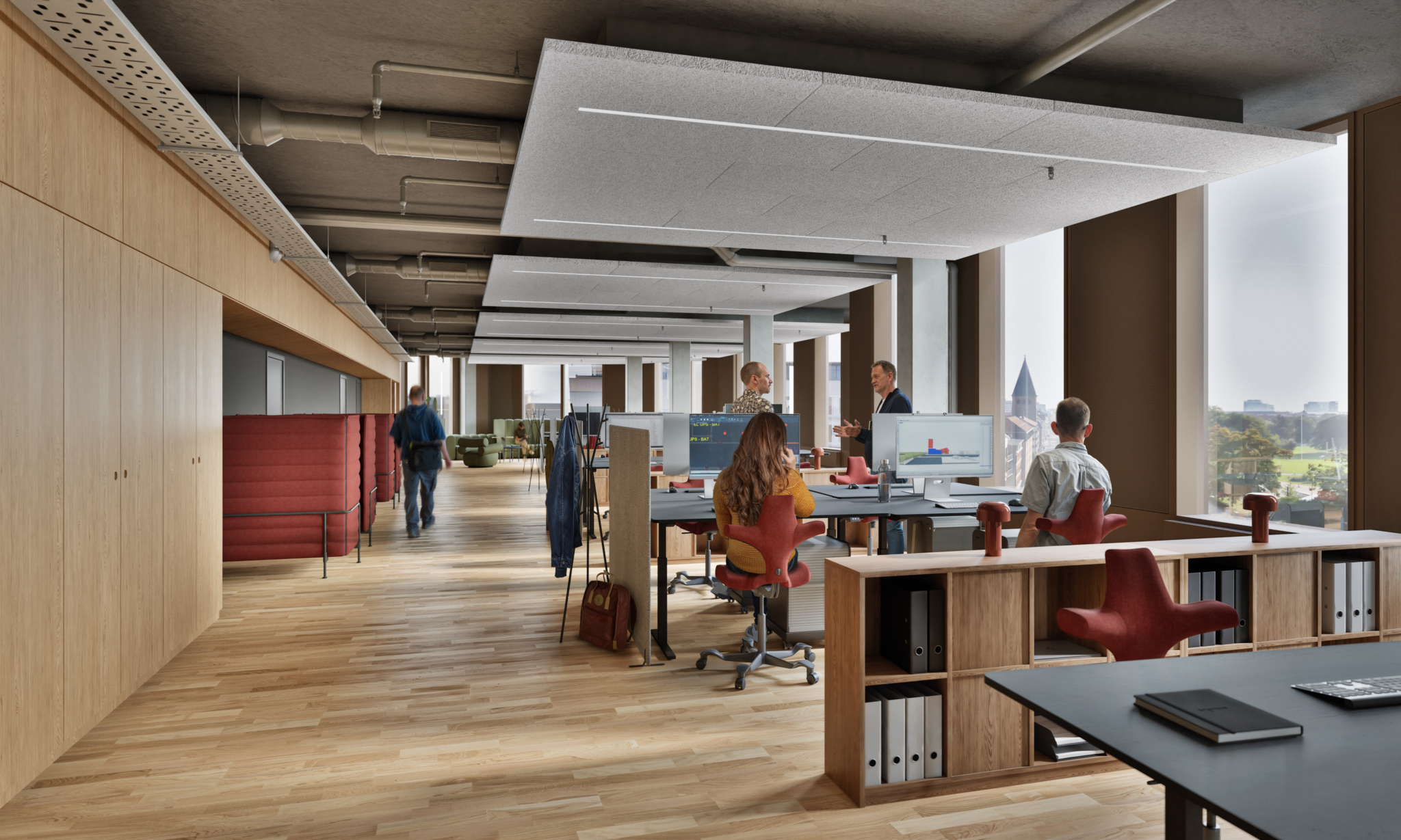 Her finder du nogle af byens mest fremsynede og fleksible kontorkvadratmeter, et væld af fællesfaciliteter, en fremragende udsigt over Fælledparken og gode forbindelser med både motorvej, metro og tog tæt på.