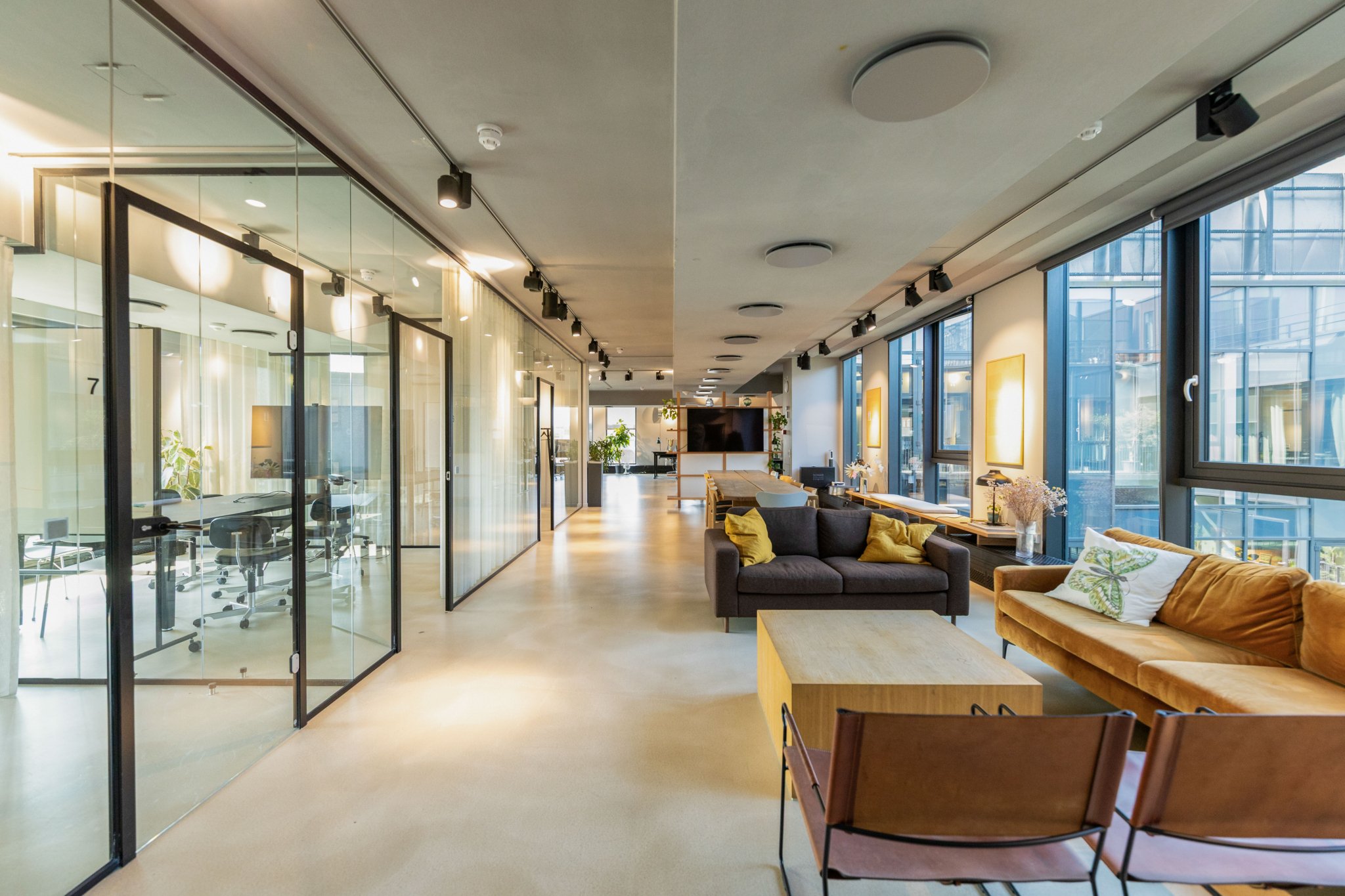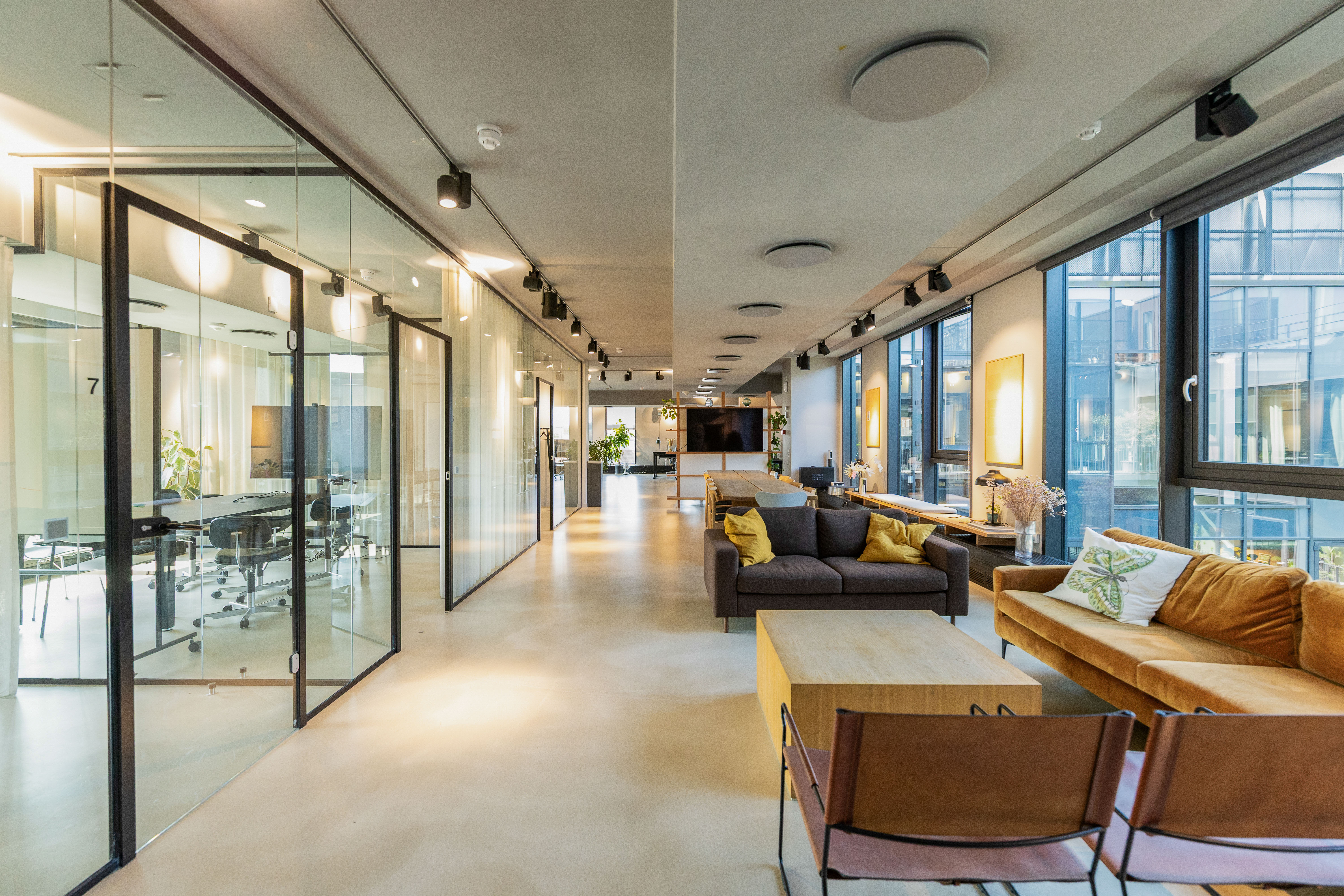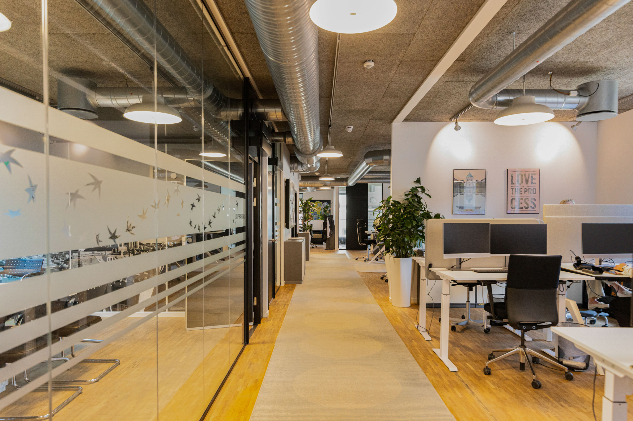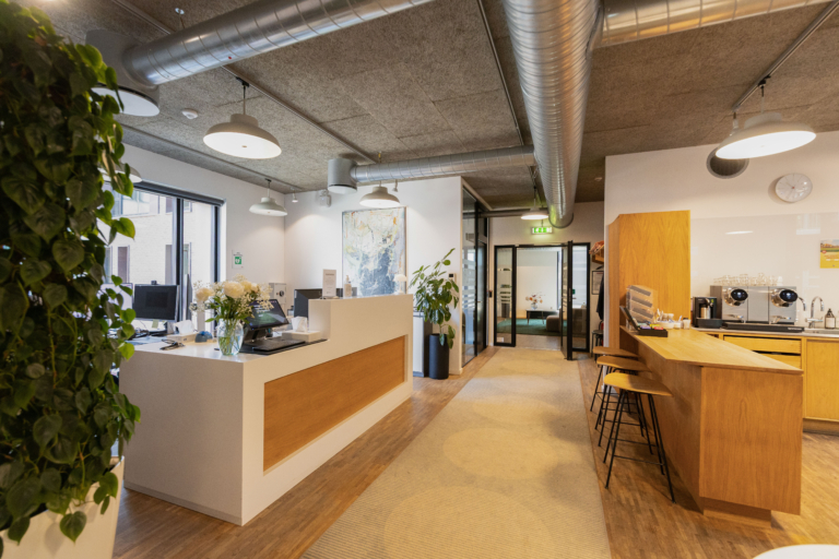 Dit nye kontor ligger i moderne ejendom, hvor brusende byliv møder skønne, grønne omgivelser
