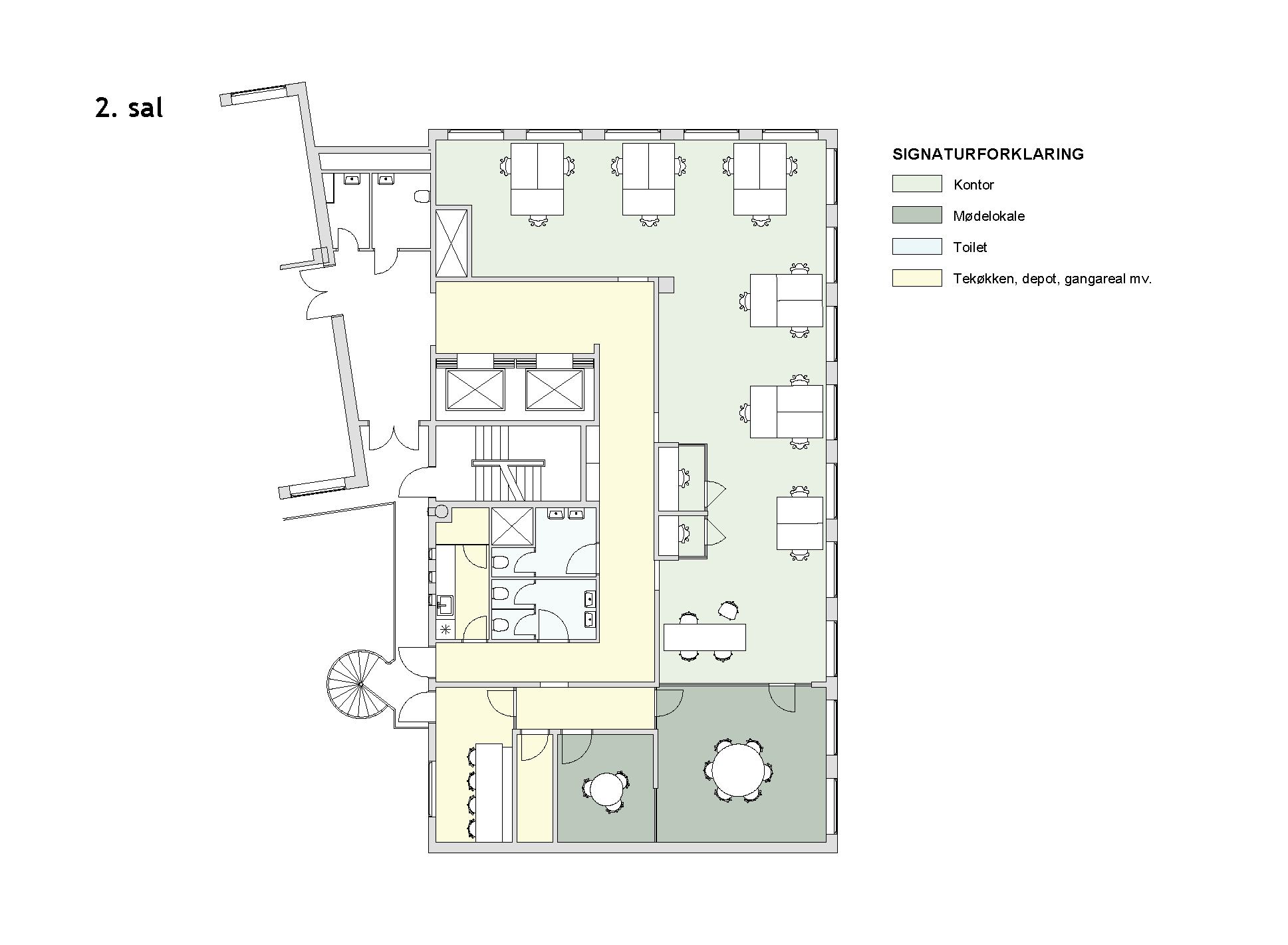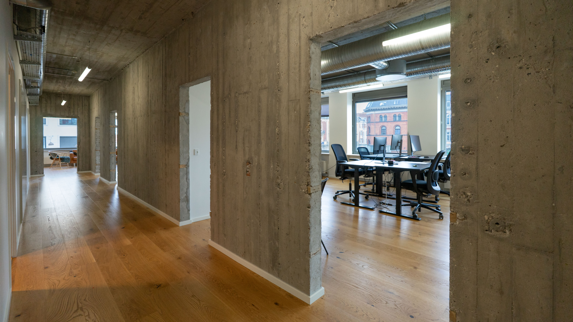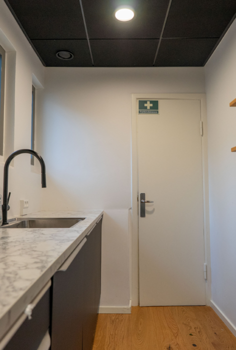 Lejemålet byder på et indgangsområde, store lyse lokaler, køkken, samt mødelokaler i varierende størrelser. Dertil kommer en fælles terrasse, der giver medarbejderne mulighed for at spise udenfor i de varme måneder.