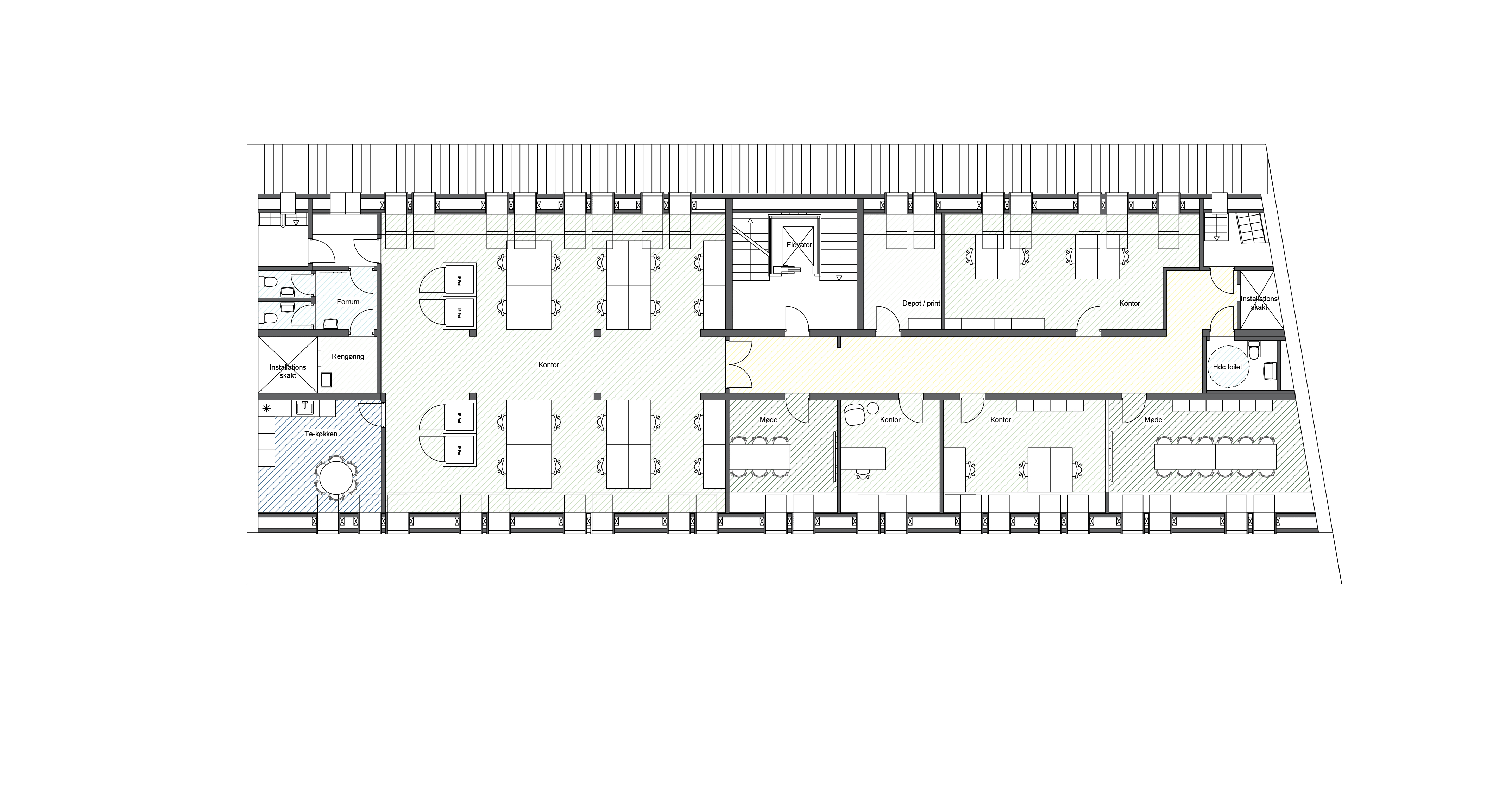 Købstadsforeningen opførte ejendommen i 1931, og dengang som nu har Gyldenløvesgade altid været én af de absolutte hovedårer for trafikken til og fra det indre København. Den centrale placering gør ejendommen attraktiv for både medarbejdere og kunder, der nemt kan komme til og fra. Det ledige lejemål er beliggende på ejendommens øverste etage, som både giver et godt lys til arbejdsdagen og en helt unik udsigt over byen. Vejen til lejemålet sker via den store hovedtrappe eller elevator, der kører helt til ejendommens top. Lejemålet rummer mange forskellige indretningsmuligheder med både større og mindre mødelokaler og også kontorer i varierende størrelser. Lejemålets storrumskontor kan med fordel også anvendes i forbindelse med kurser eller konferencer. Foruden de gode muligheder for at komme til og fra, er ejendommen genbo til Ørstedsparken, der blev anlagt helt tilbage i 1879. Som et lille åndehul, mellem to af Københavns centrale trafikårer, er parken oplagt at besøge i forbindelse med frokostpausen, walk and talks eller efter arbejde.