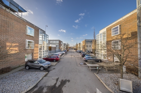 Tager du bilen på arbejde, kan du parkere på de tilstødende parkeringspladser omkring ejendommene. Sydvestvej 104 ligger tæt på både ringvej og motorvejsnet. Fra hovedindgangen er der desuden ikke langt til offentlig transport. Sydvestvej 104 ligger i gåafstand fra Glostrup Station, hvorfra du kan nå Københavns Hovedbanegård på under 20 minutter. Desuden går der også bus fra Glostrup Station, som stopper tæt på ejendommen.