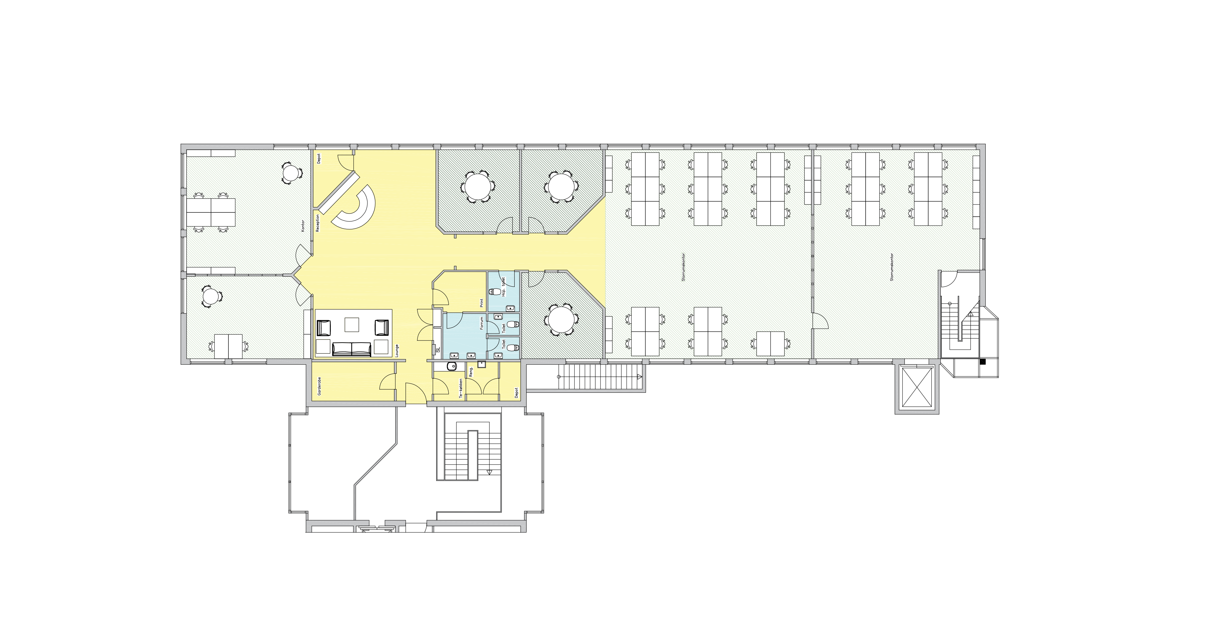 Det ledige lejemål er beliggende på ejendommens 1. sal og udgør i alt 699 m2. Lejemålet er indrettet med storrumskontorer samt mindre kontorer og mødelokaler med stor fleksibilitet i forhold til at indrette kvadratmeterne, så de matcher jeres behov. Lejemålet rummer desuden et stort receptionsområde.