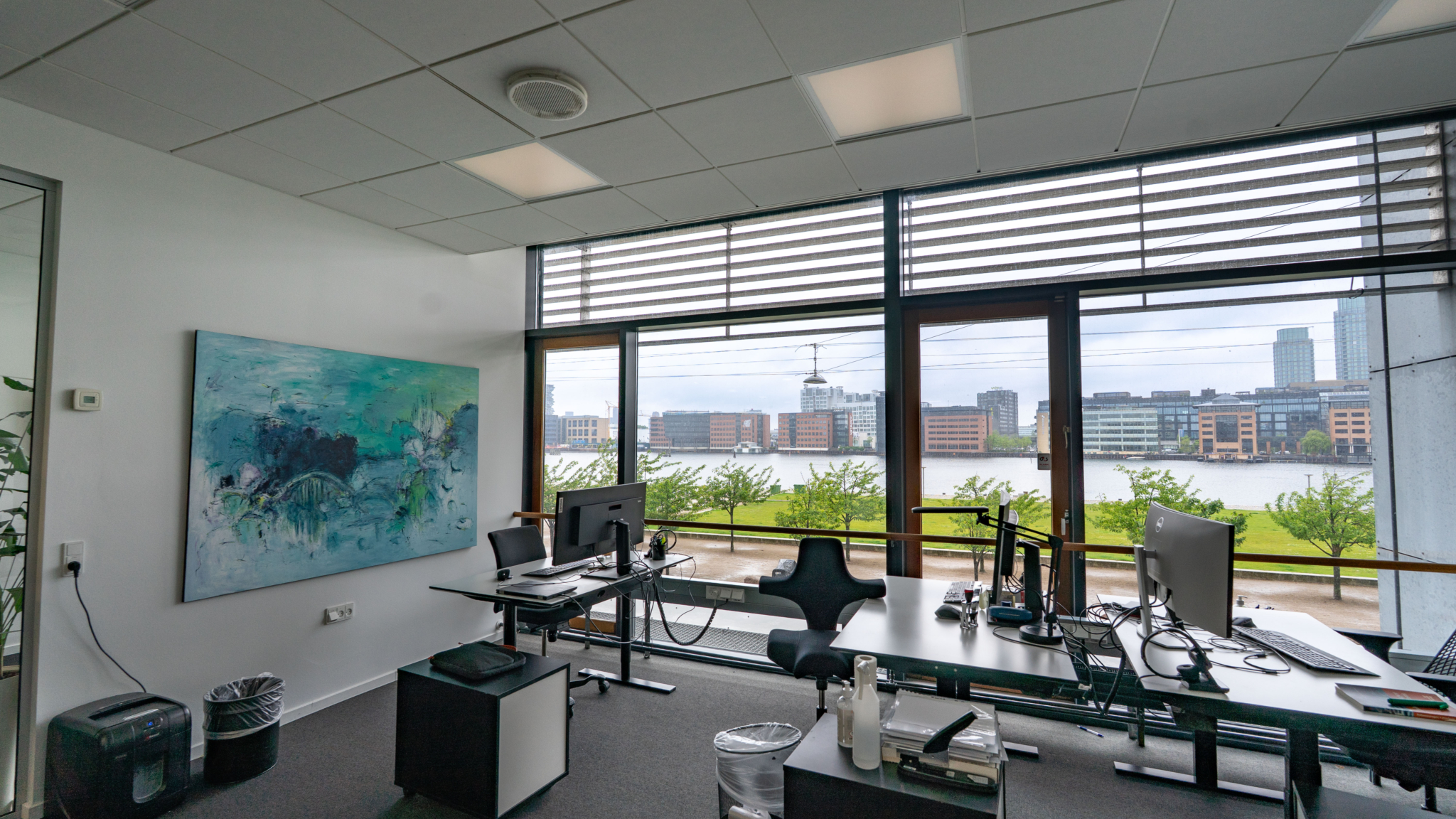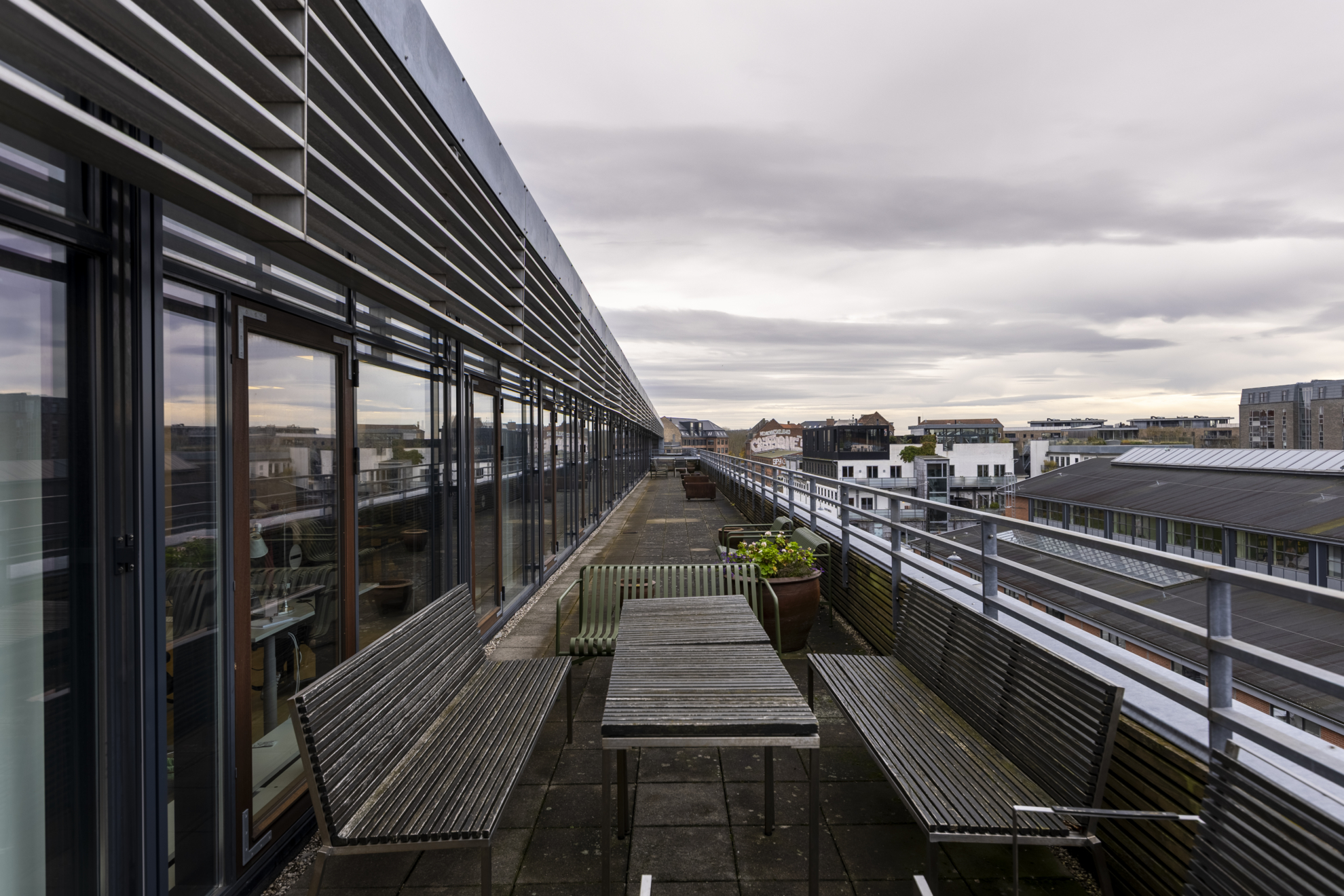 Uden for vinduerne, i forårs- og sommerperioden, nydes livet foran ejendommen med solbadende gæster på den grønne plæne og længere nede ad vejen findes Havnebadet – et friluftsbad midt i København.