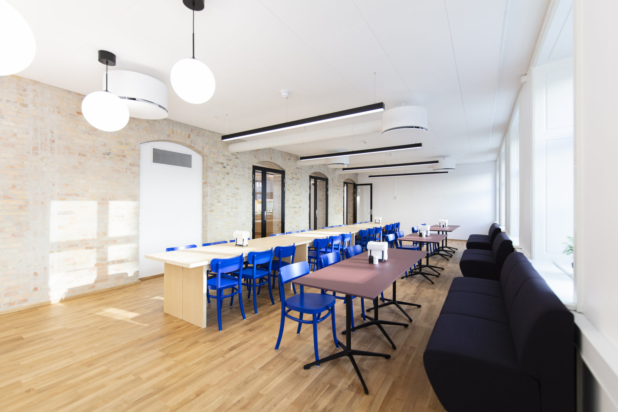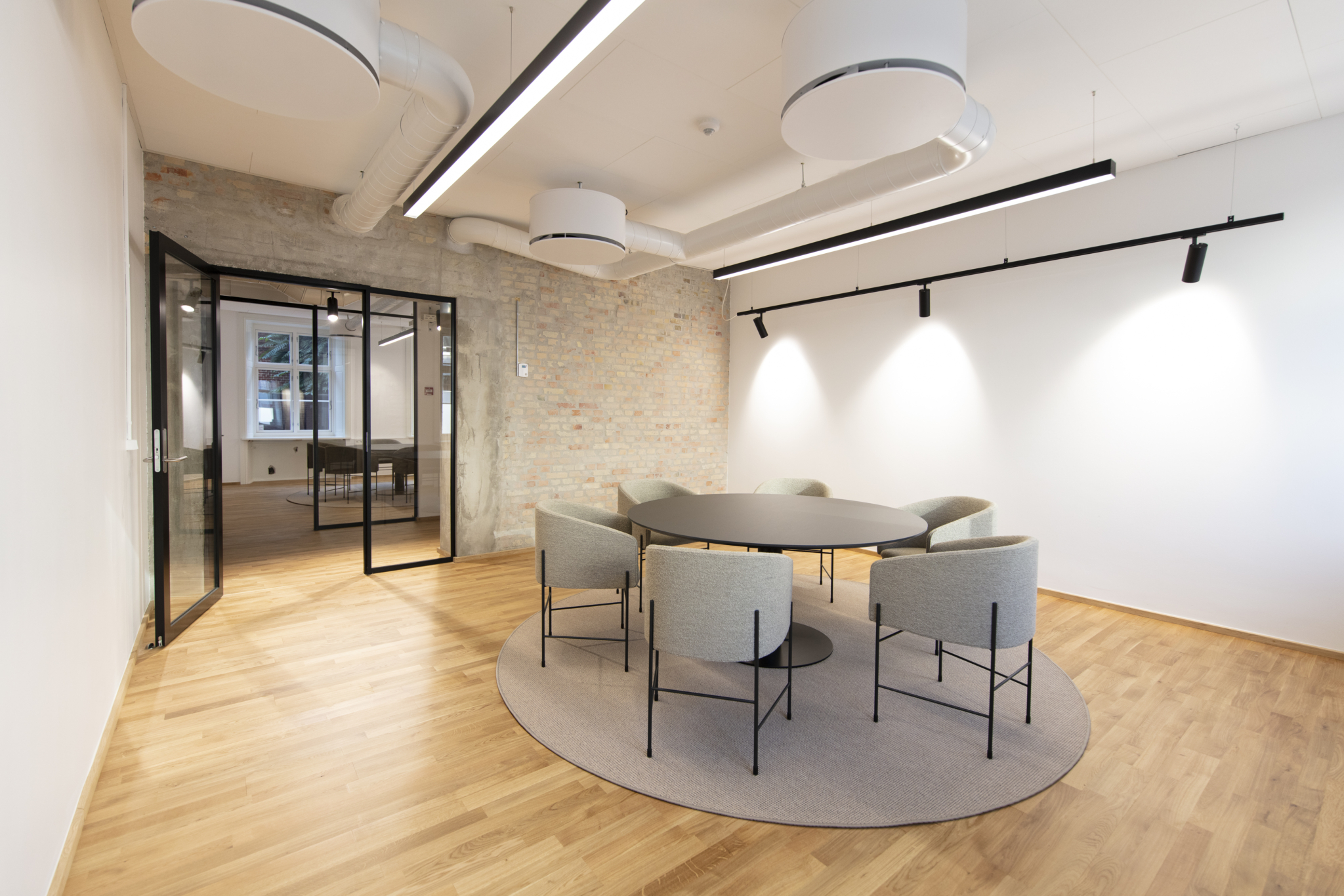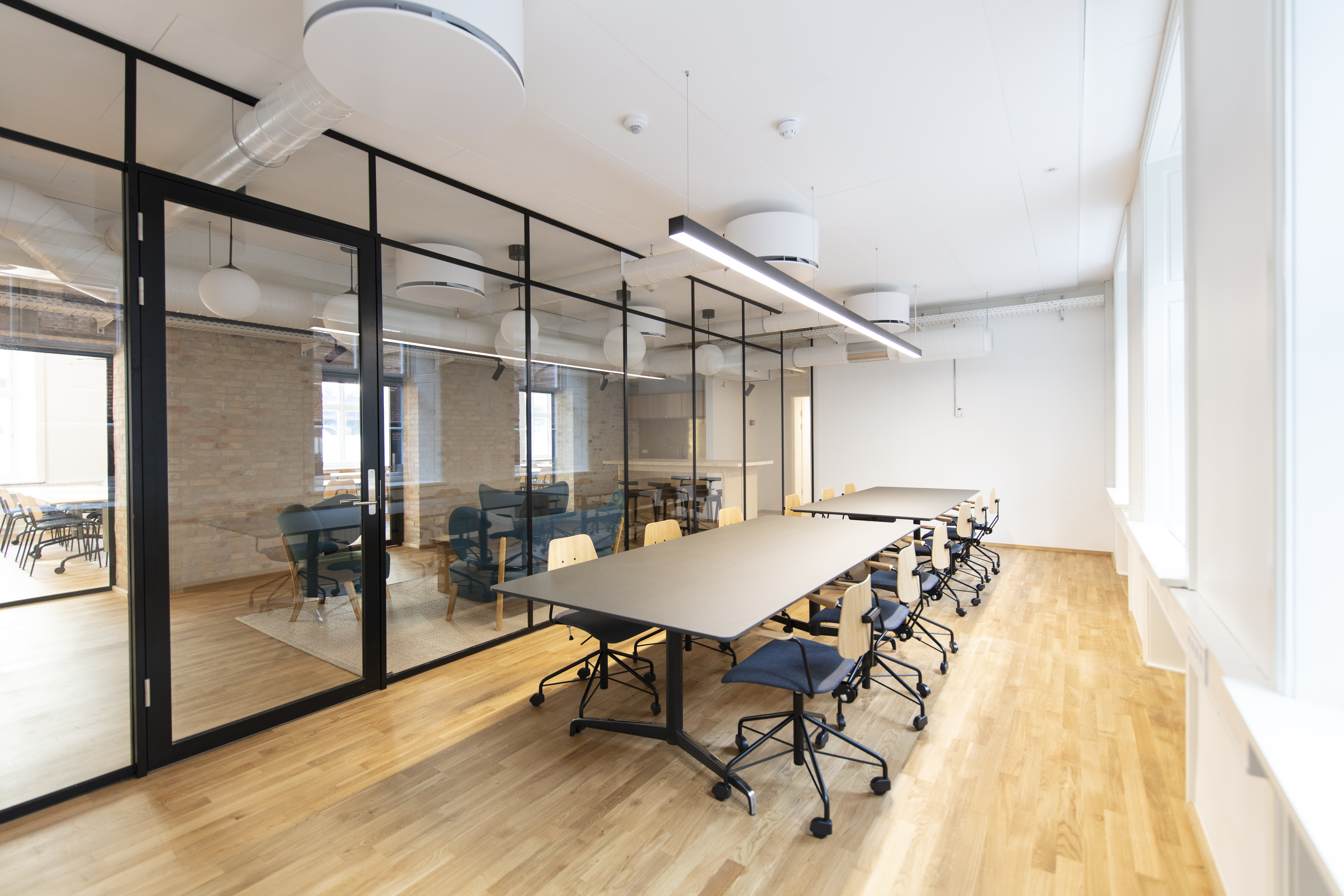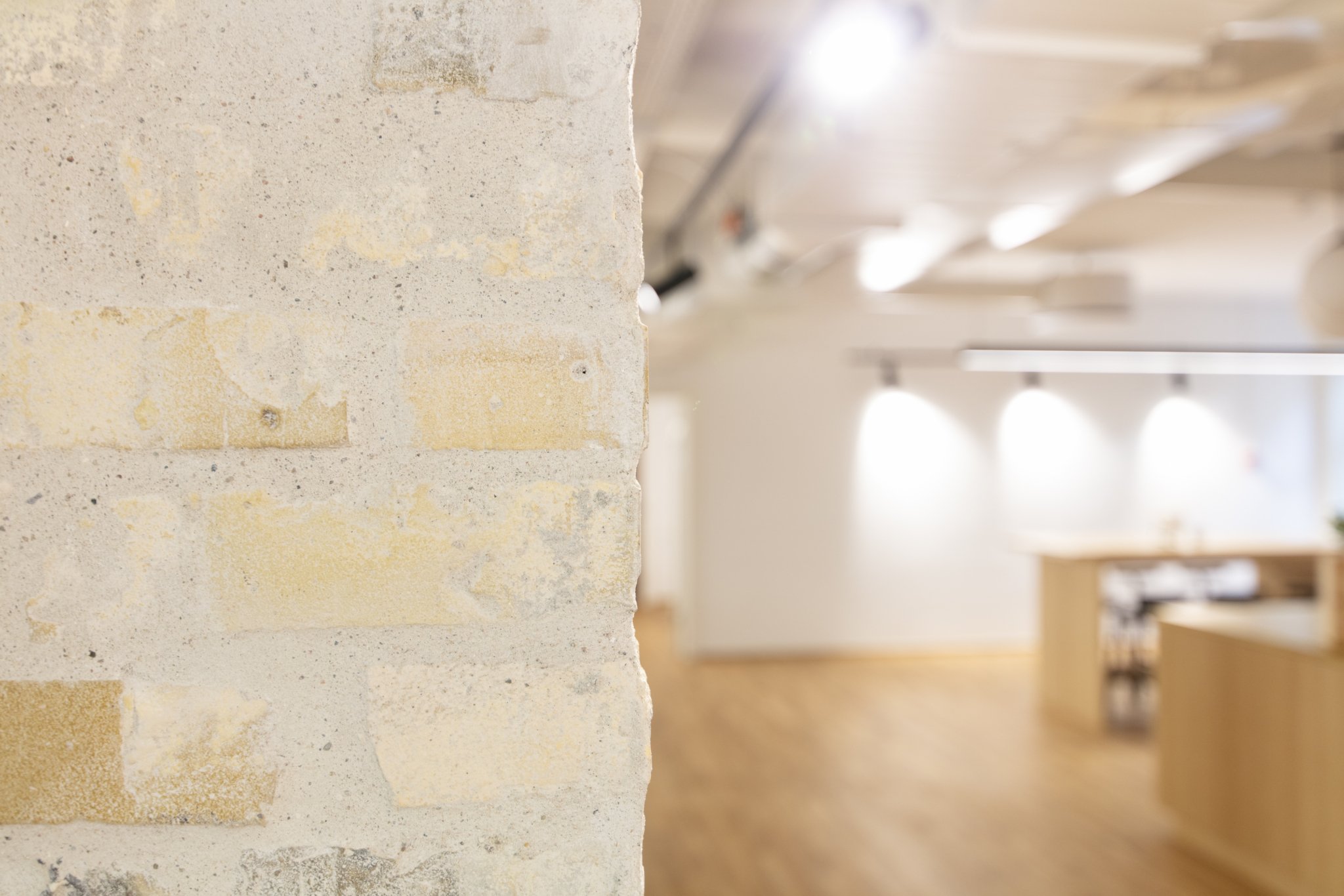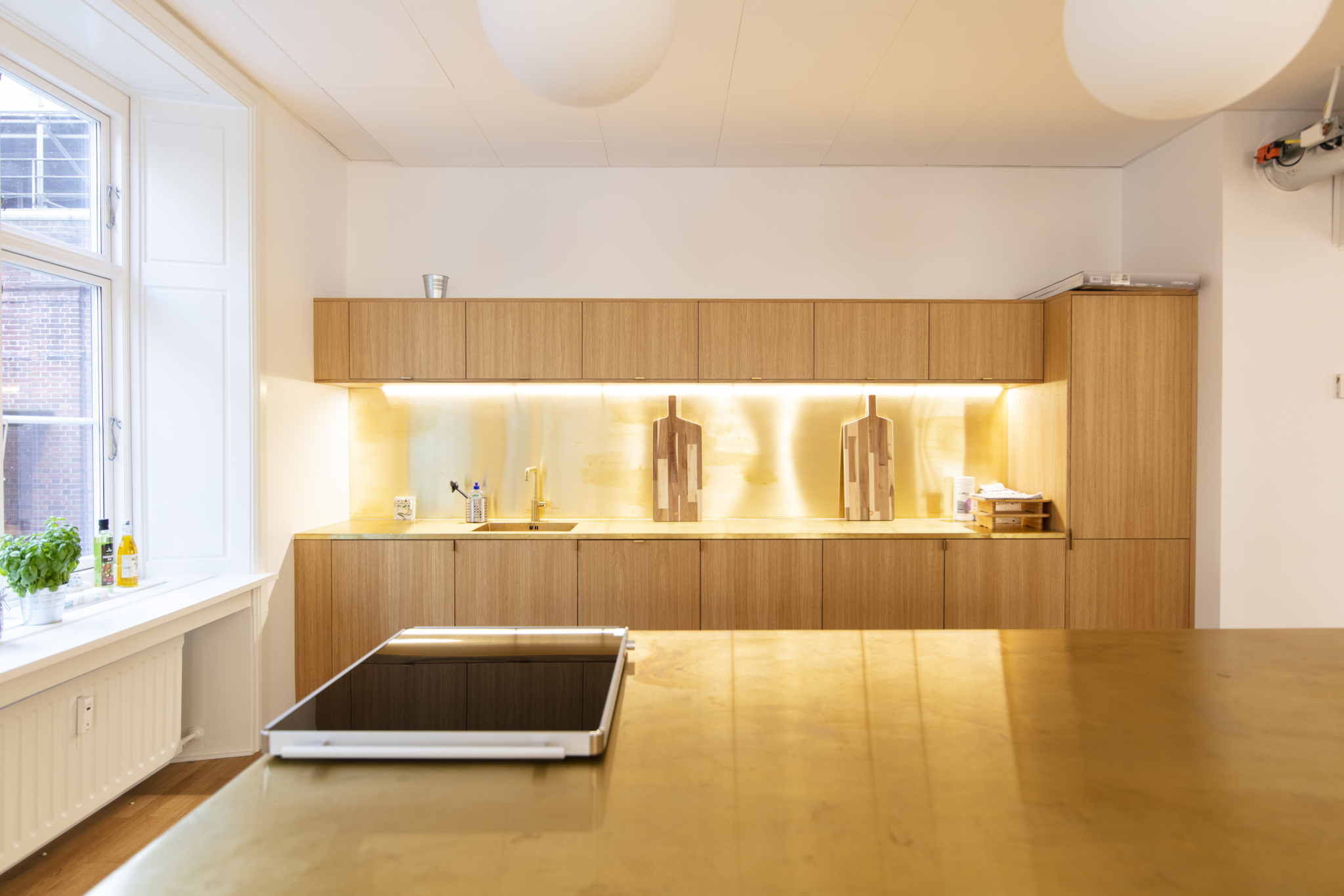 Det nyindrettede lejemål byder på tekøkken, en åben planløsning med stor fleksibilitet og masser af dagslys fra de store vinduer mod gade og gård.