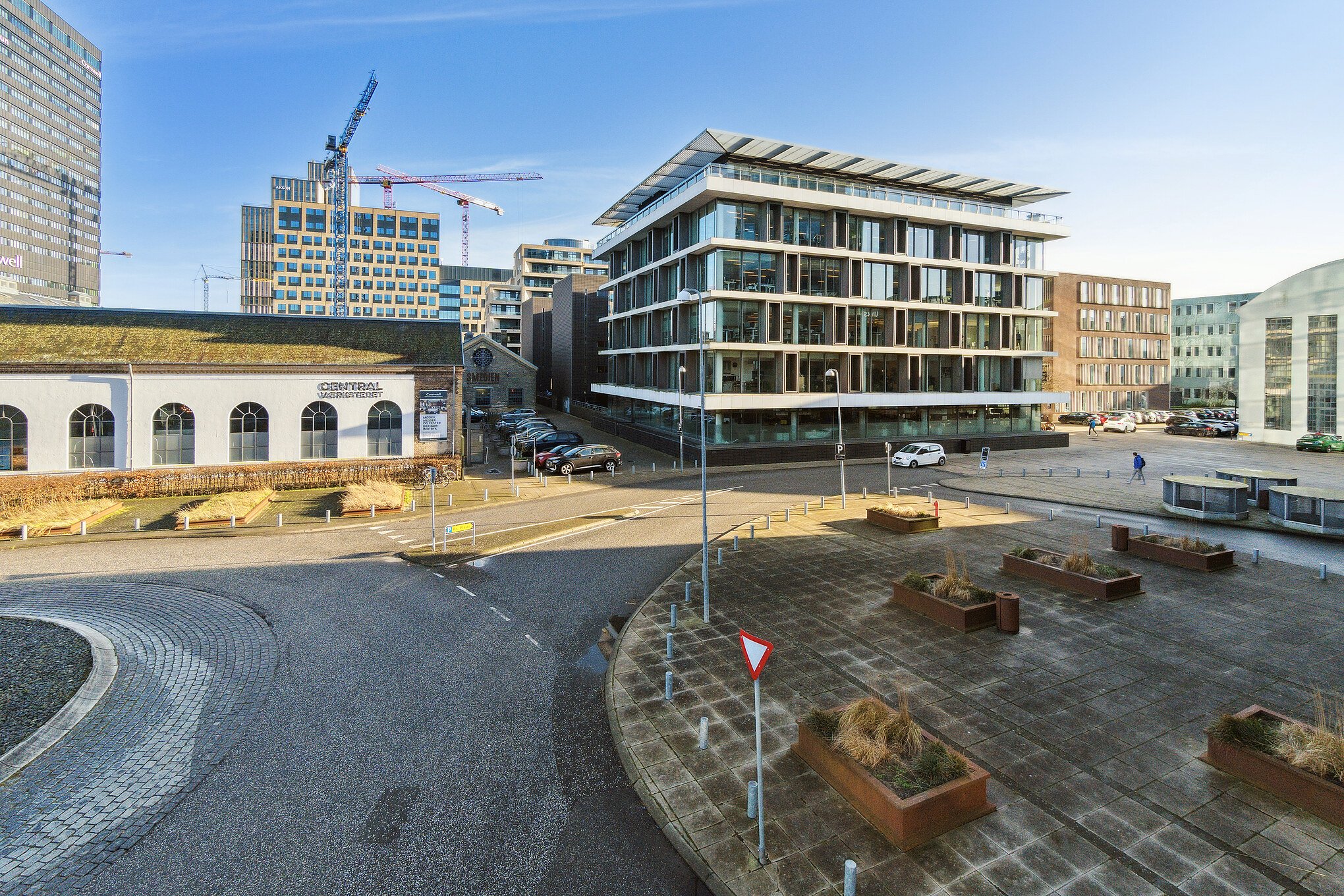 Kontorhuset Værkmestergården ligger i det spændende og dynamiske område omkring Centralværkstedet og Bruuns Galleri i centrum af Aarhus. Ejendommen er opført i to etaper med syv års mellemrum, der begge er tegnet af Schmidt Hammer Lassen Architects og fremstår med hver deres arkitektoniske udtryk.