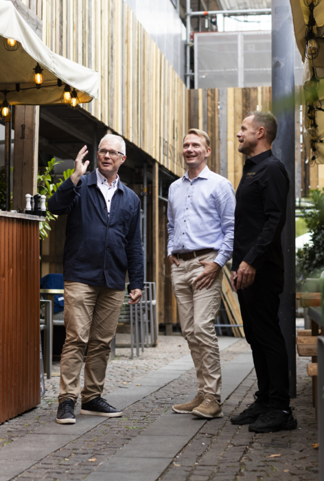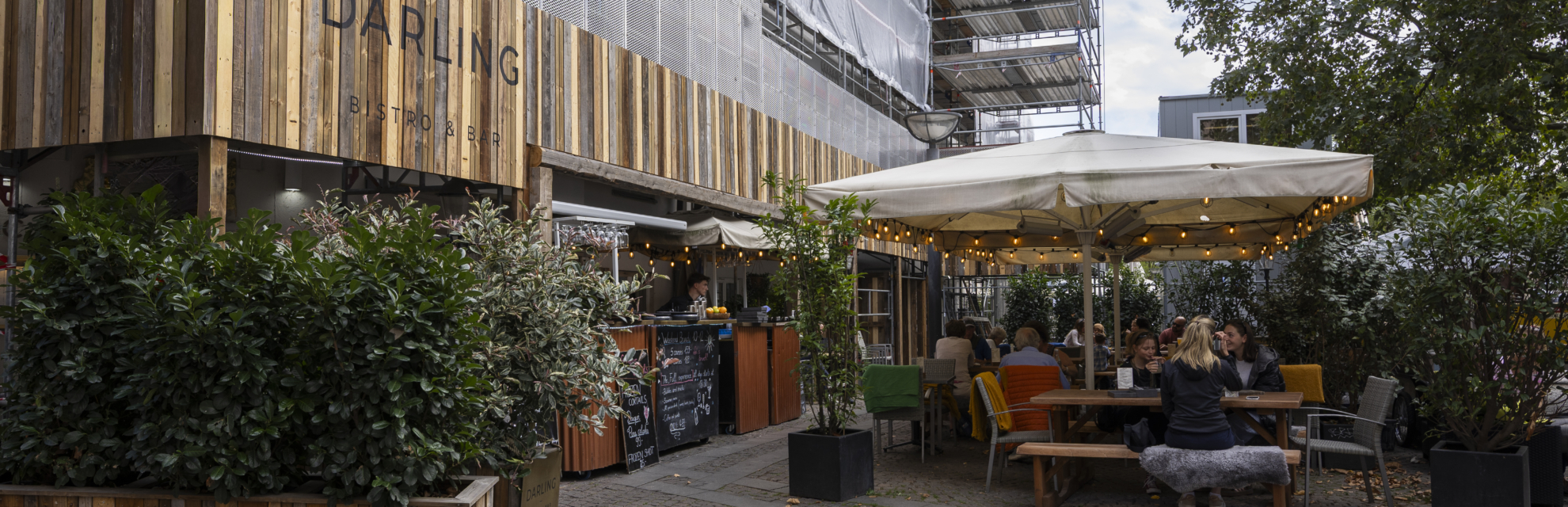 I 2025 har vi også taget vores del af byrummet. Blandt andet i området omkring Højbro Plads i indre København, hvor vi nænsomt renoverer facader og tage på flere af vores ældre ejendomme. Derfor har vi i samarbejde med Urban Advisory forsøgt at udnytte det anderledes byrum, som stilladserne skaber. At give noget til omgivelserne i stedet for at tage fra dem. Både i gadeplan op til 2,5 meters højde og i forhold til det visuelle udtryk op i 4-5 meters højde.