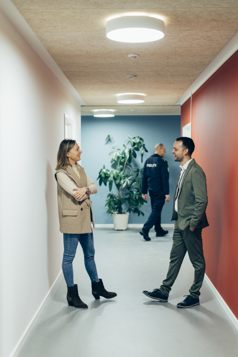 Fra foråret 2025 skal i omegnen af 340 betjente og andre ansatte hos Københavns Politi have deres gang på Gl. Køge Landevej i Valby. Egentlig har politiet haft adresse der siden 1986, men en større rokade internt i politikredsen betyder flere mennesker og nye funktioner på stationen i Valby – og det stiller andre krav til rammerne. Derfor er det 8.000 m2 store lejemål under ombygning, og det sker i et særligt tæt samarbejde mellem senior projektleder i ATP Ejendomme, Magdalena Nowak Nielsen og Michael Rejgaard Hansen, der er projektleder i bygningsafsnittet hos Københavns Politi. ”Normalt får vi bare en accept fra vores udlejer på, at vi må lave de her ombygninger, og så melder vi ind, når vi er færdige. Og det er faktisk den eneste kontakt, vi har med udlejer. Så det her projekt adskiller sig rimelig meget fra alt andet,” fortæller Michael.