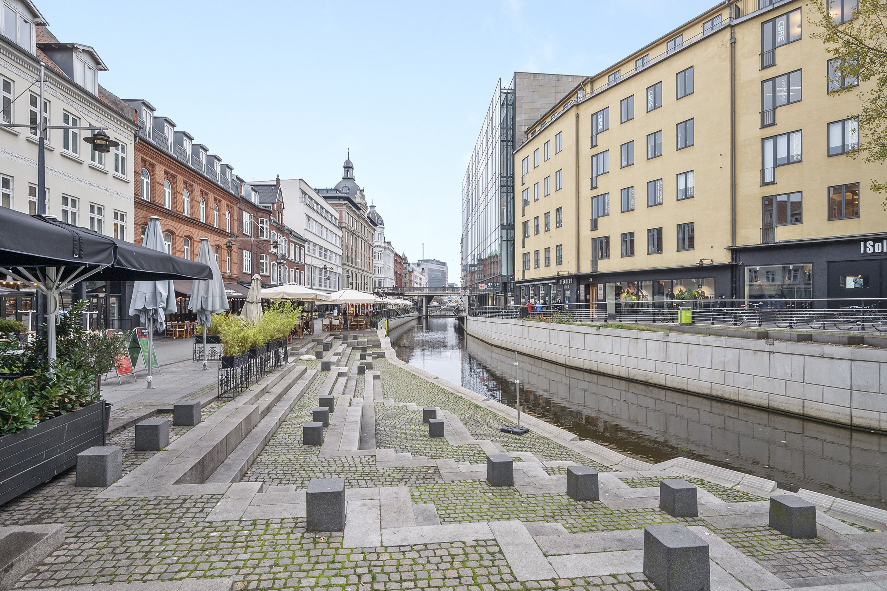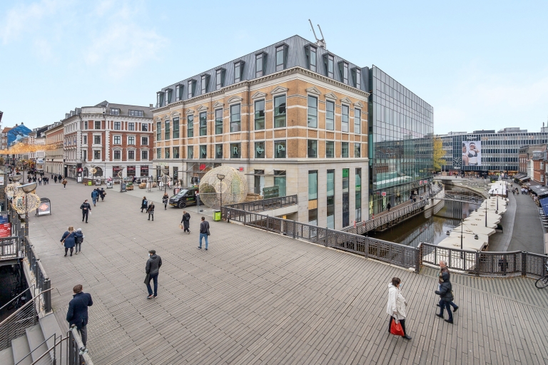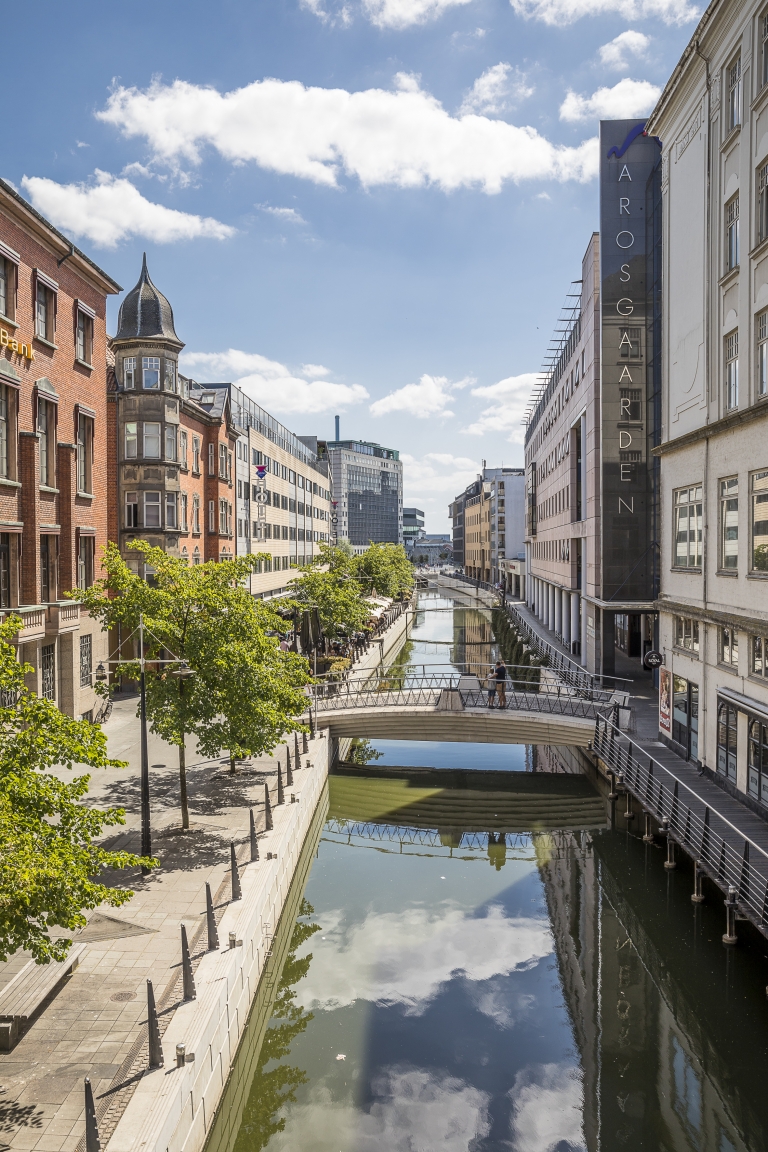Kontorlejemålet er centralt beliggende i Aarhus C med åen som nabo