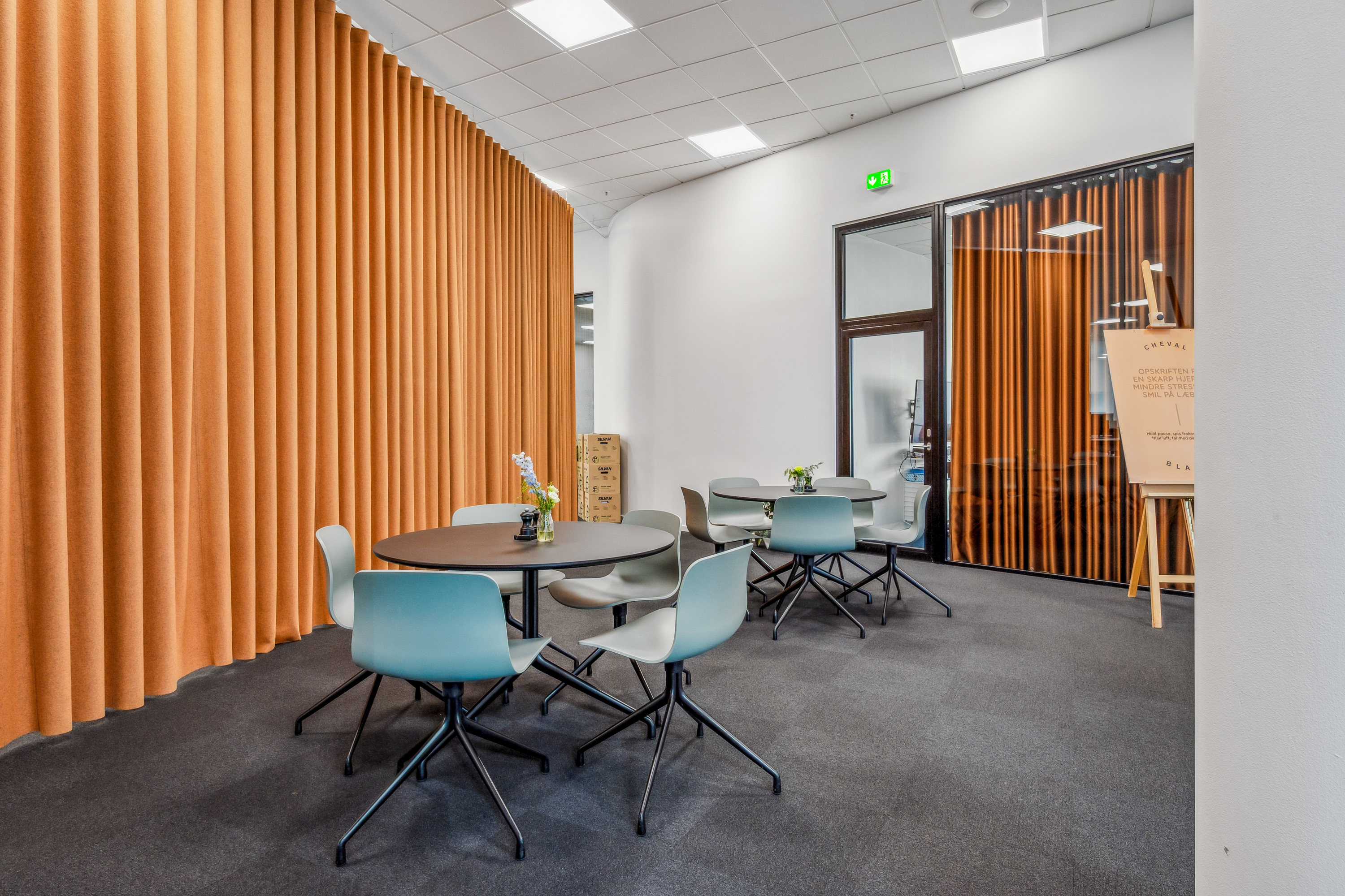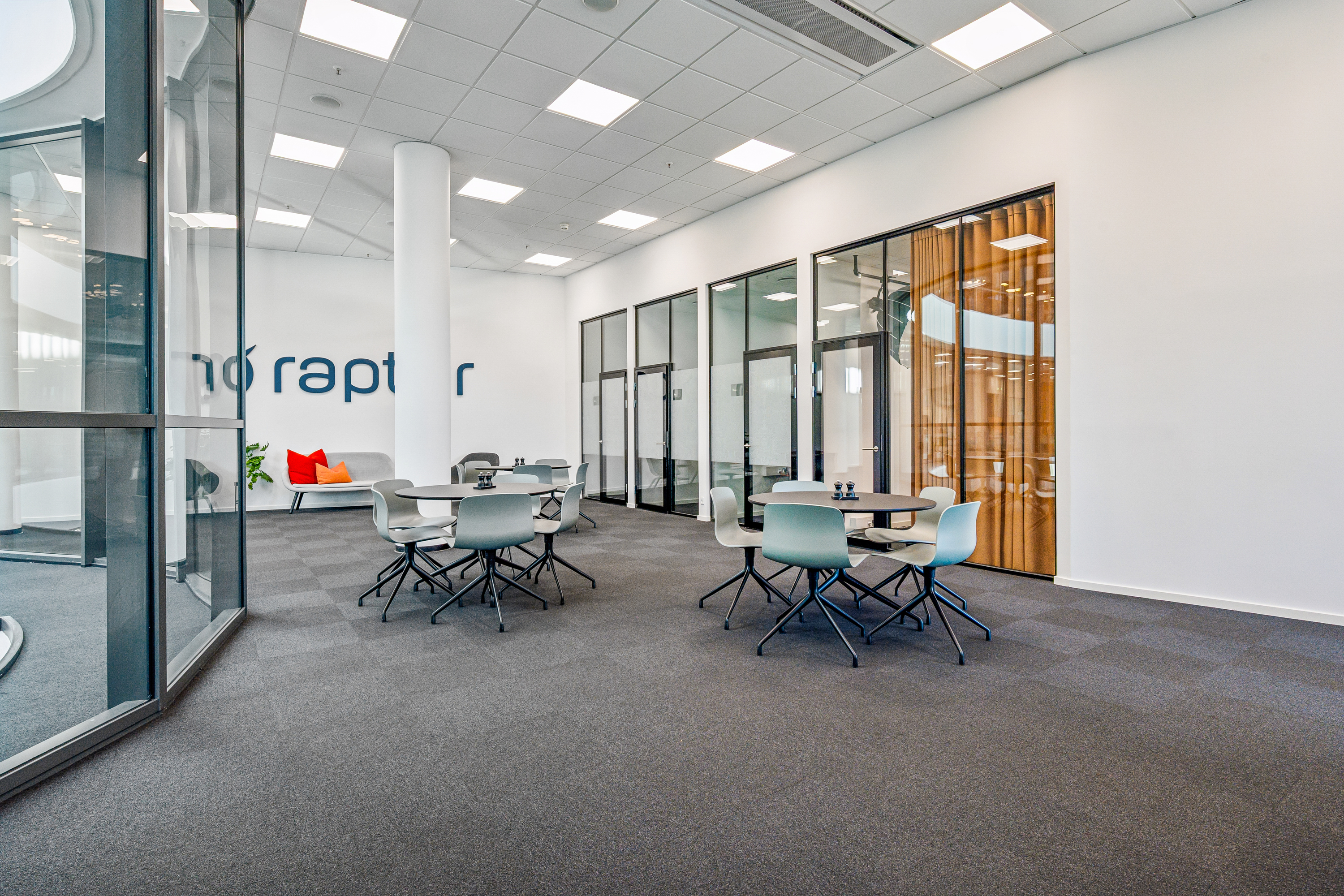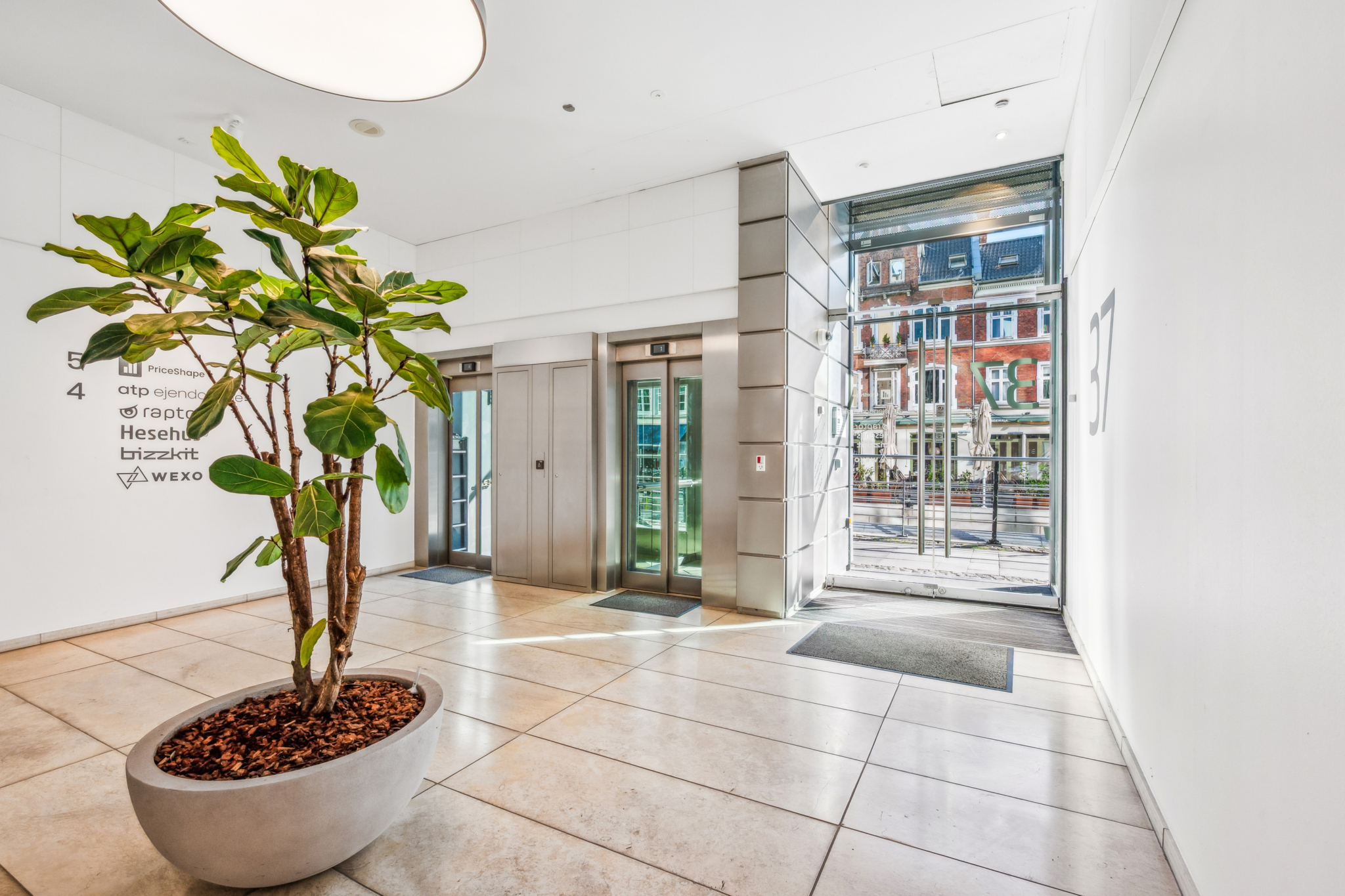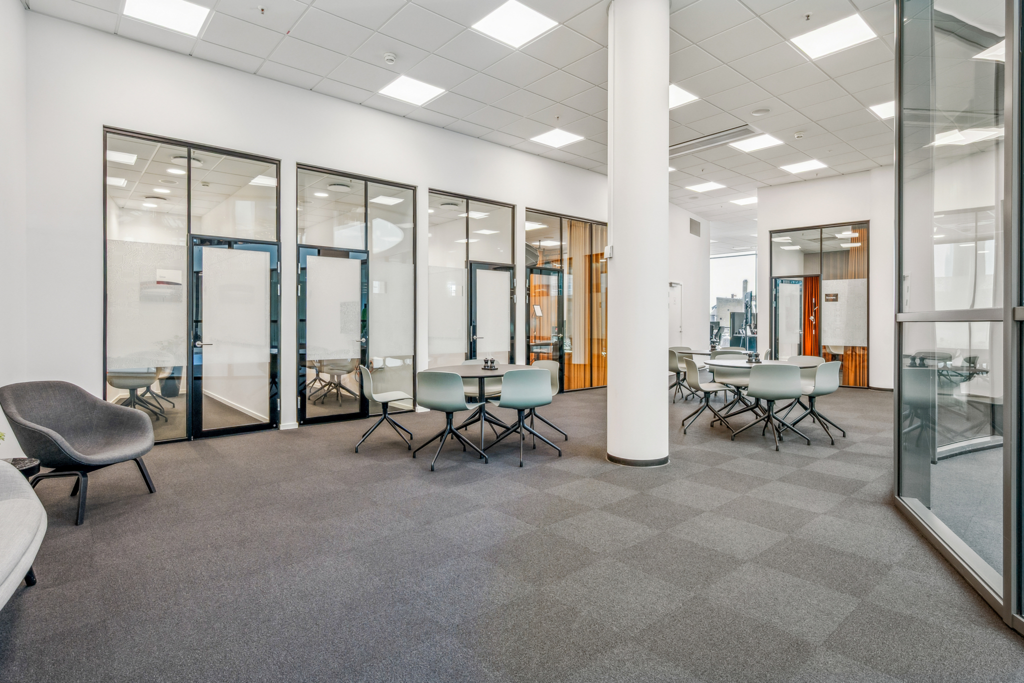 Med indgang fra Åboulevarden – lige overfor caféerne Sidewalk og Grappa – kan man tage elevatoren op til det åbne og indbydende kontor på 4. sal. Her bliver man mødt af et lyst, højloftet og åbent kontorlandskab, hvor enorme gulv til loft vinduespartier åbner for en fantastisk udsigt over Aarhus.