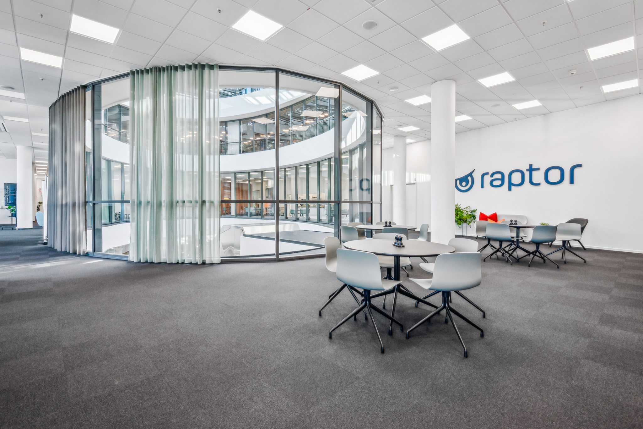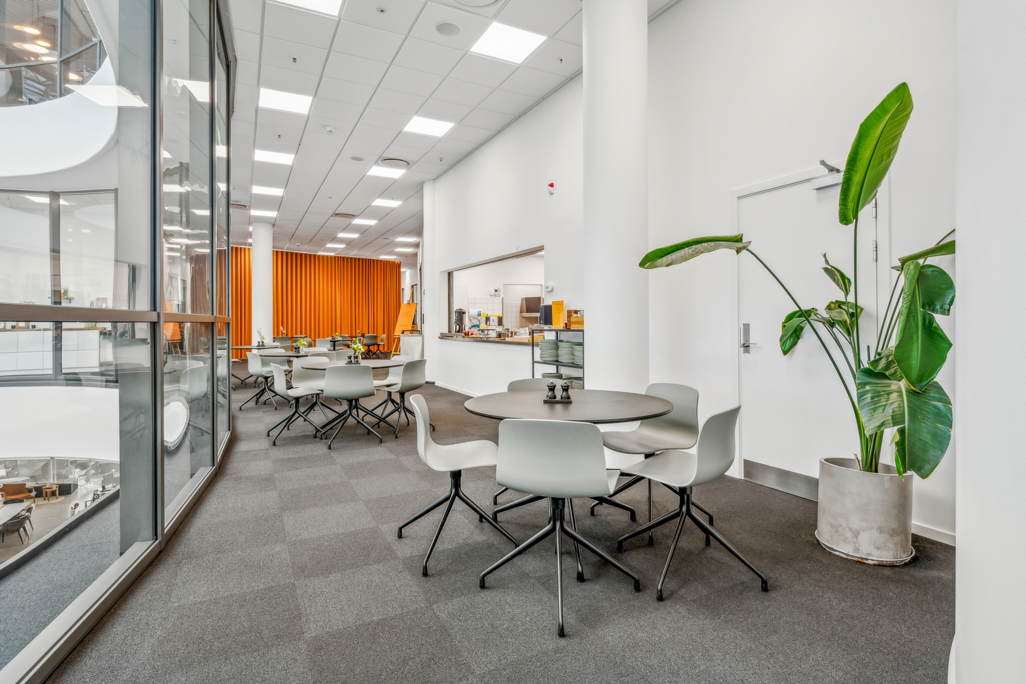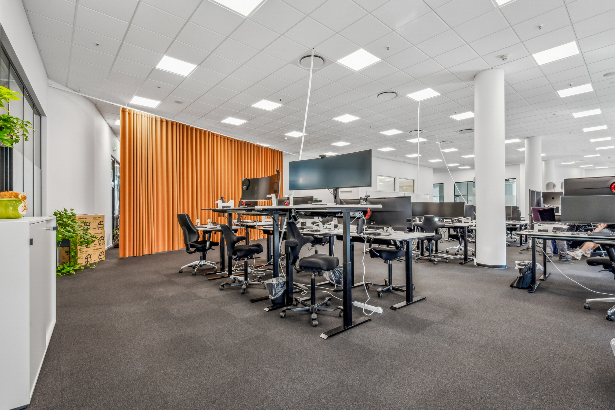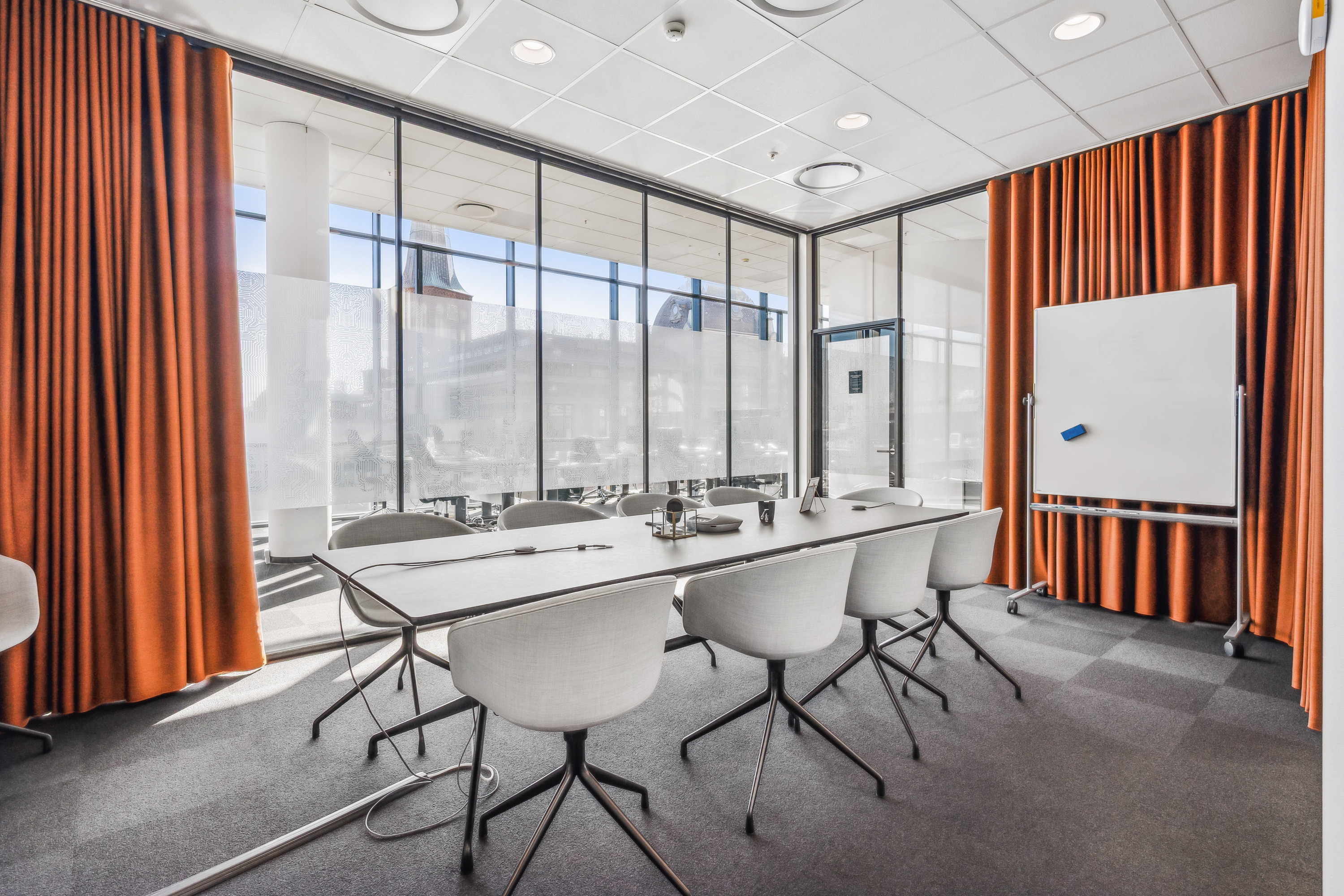 Med indgang fra Åboulevarden – lige overfor caféerne Sidewalk og Grappa – kan man tage elevatoren op til det åbne og indbydende kontor på 4. sal. Her bliver man mødt af et lyst, højloftet og åbent kontorlandskab, hvor enorme gulv til loft vinduespartier åbner for en fantastisk udsigt over Aarhus.